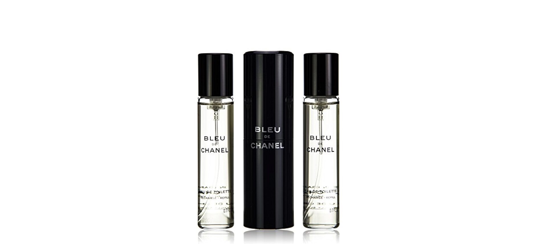Buscas el set de 3 unidades de BLEU DE CHANEL EAU DE TOILETTE POUR HOMME Twist and Spray de 20 ml . Es una opción popular y práctica para viajes que incluye un atomizador recargable y dos recambios.