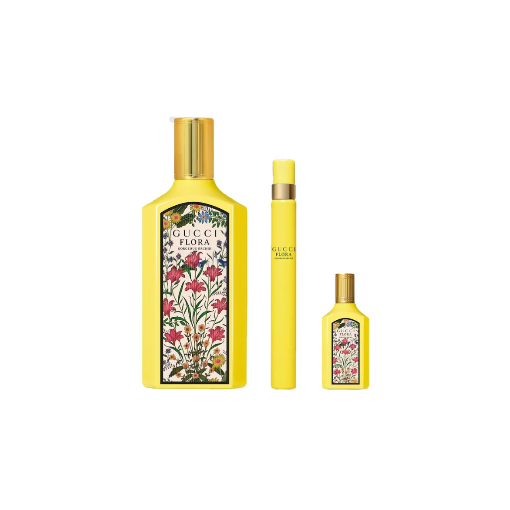 Gucci Flora Gorgeous Orchid es la incorporación de 2024 a la popular colección Gucci Flora. Se distingue por su brillante botella de color amarillo sol y se comercializa como la primera fragancia floral gourmand ozonica de la Casa.