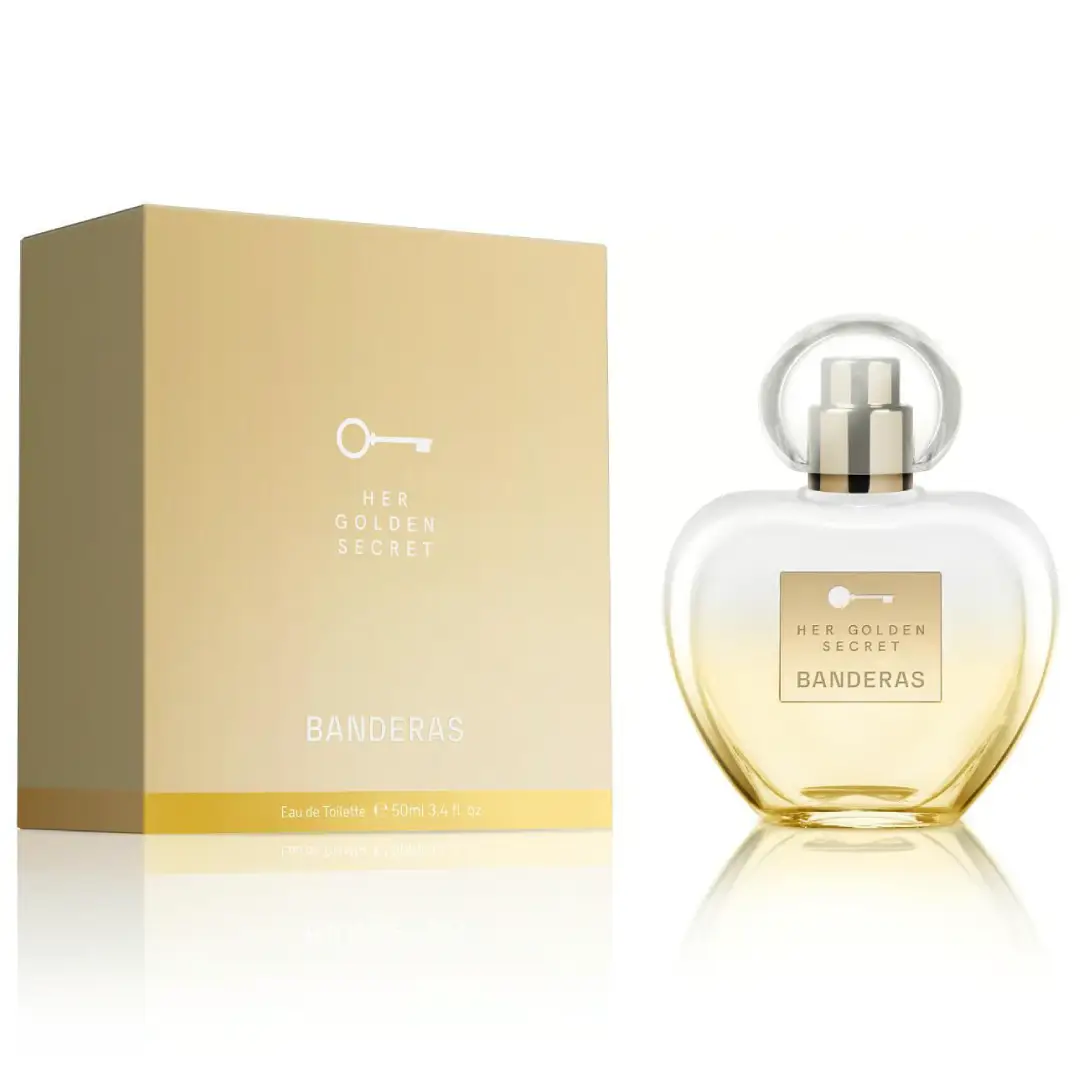 Her Golden Secret Antonio Banderas 80ml es una fragancia floral de ámbar para mujer que se lanzó en 2013. Es un aroma lujoso y femenino con notas de melocotón, manzana, mandarina y bergamota en las notas de salida, gardenia, flor de naranja y grosella negra. en las notas de corazón y vainilla,haba tonka,almizcle,pachulí,y cedro en las notas de fondo.